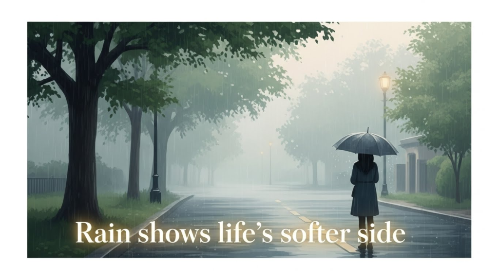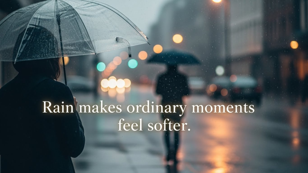 - Rain makes ordinary moments feel softer